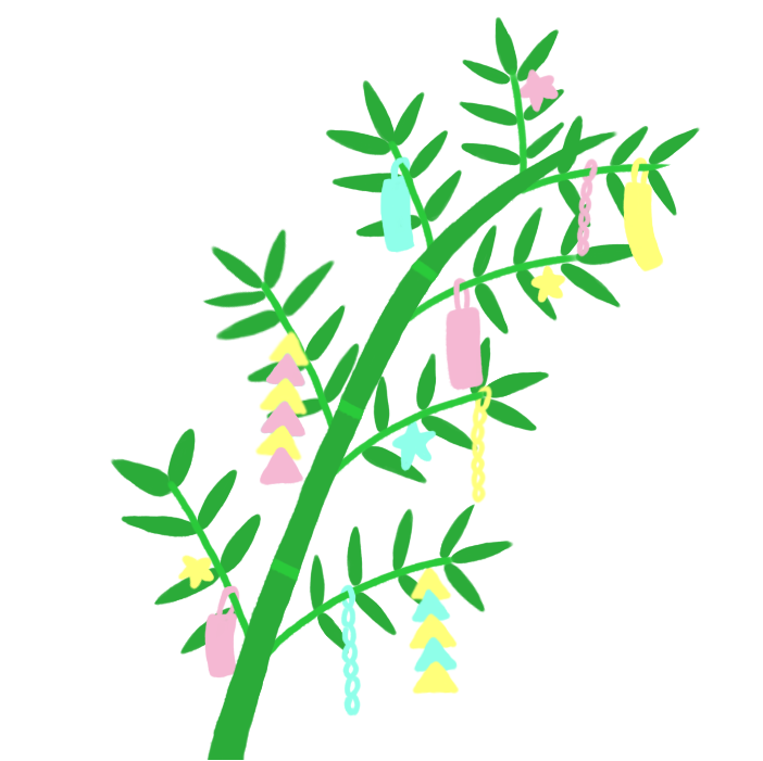 竹(笹)に七夕の飾りをしたイラストです。