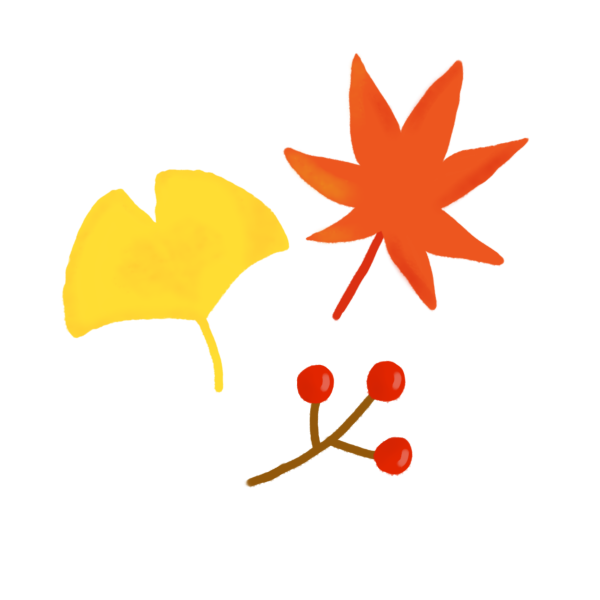 イチョウ、紅葉、木の実の素材のイラストです