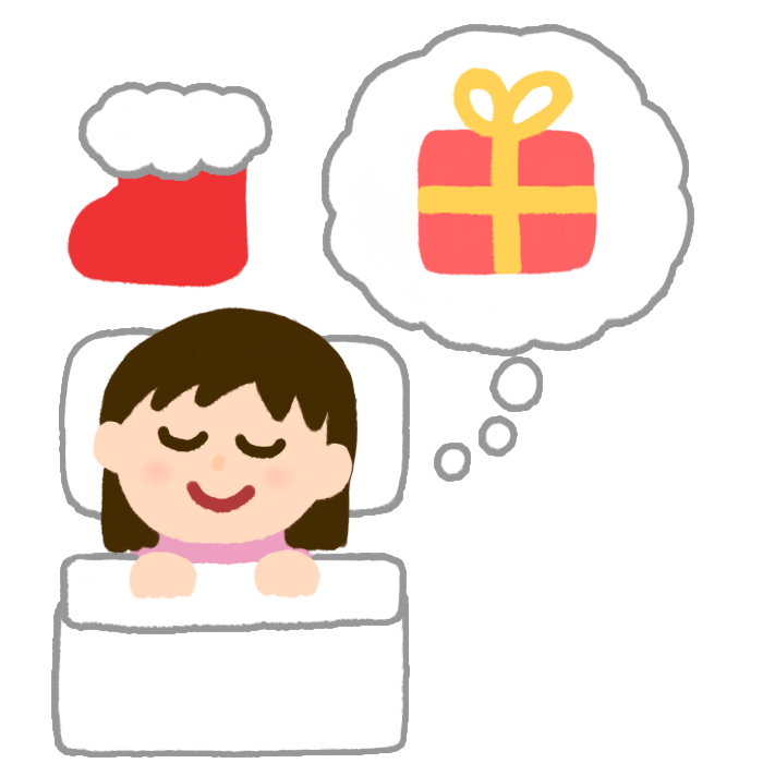 クリスマスプレゼントを楽しみにしている女の子のイラスト クリスマス 2023.10.04 クリスマスプレゼントを楽しみに待って寝ている女の子のイラストです。 プレゼントを楽しみにしている女の子 (211 ダウンロード ) ギフト、サンタクロース、就寝