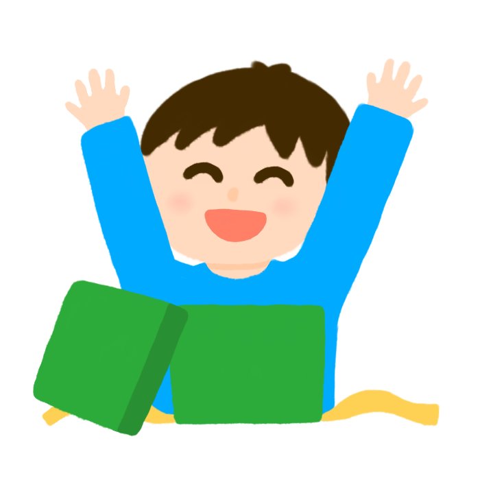 プレゼントを貰って喜ぶ男の子のイラストです。