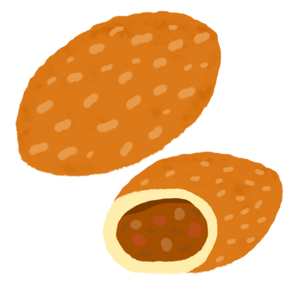 油で揚げたカレーパンのイラストです。