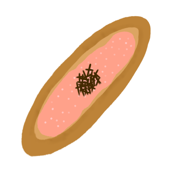 明太子がのっているフランスパンのイラストです。