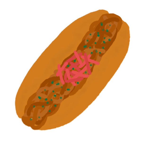 パンの中に焼きそばをはさんだ、焼きそばパンのイラストです。