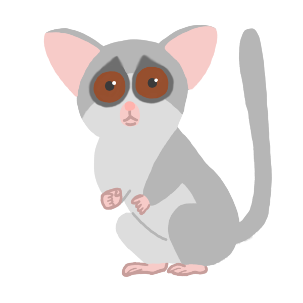 目が大きく、小さくて可愛いショウガラゴのイラストです。