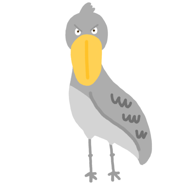 大きなクチバシが印象的なハシビロコウのイラストです。