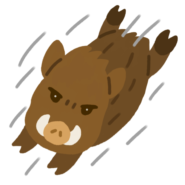走るイノシシのイラストです。
