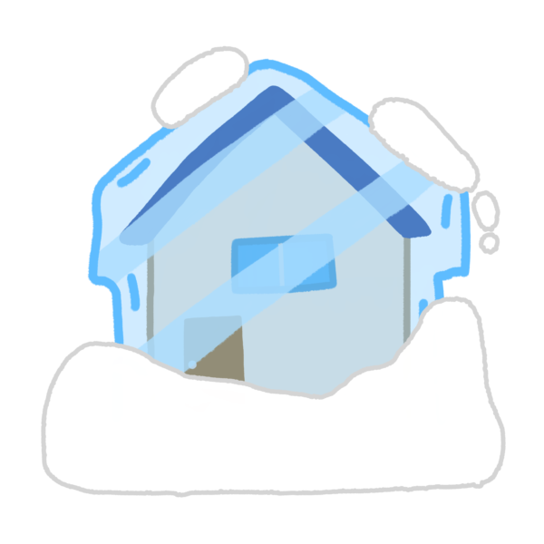 雪に覆われて凍った家のイラストです。
