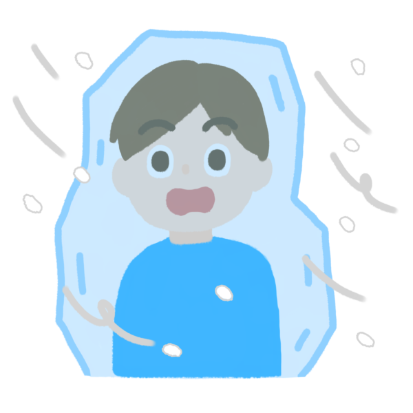 氷、驚く、固まる、凍る、ショック、悲しみ、寒い