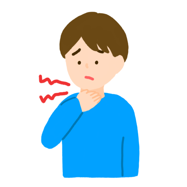 喉が痛くて手で喉を押さえている男性のイラストです。