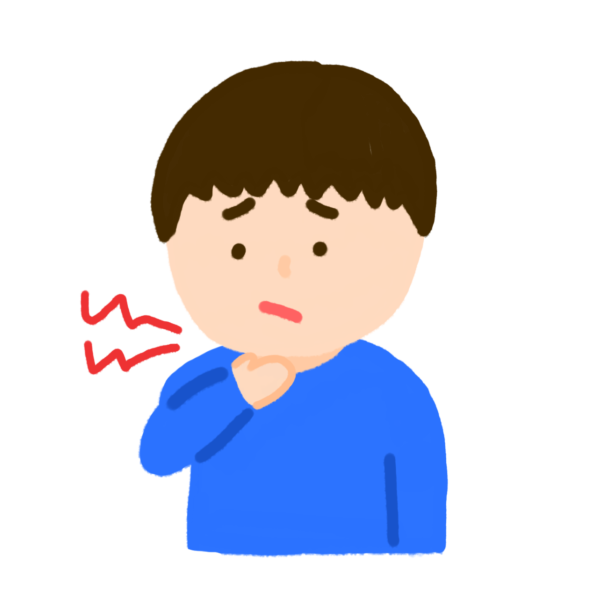 喉が痛くて手で喉を押さえている男の子のイラストです。