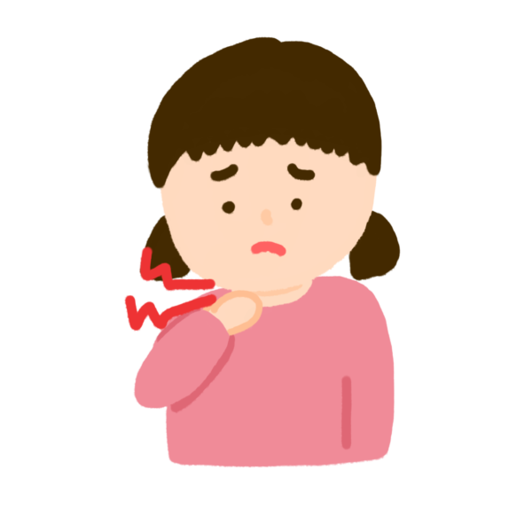 喉が痛くて手で押さえている女の子のイラストです。