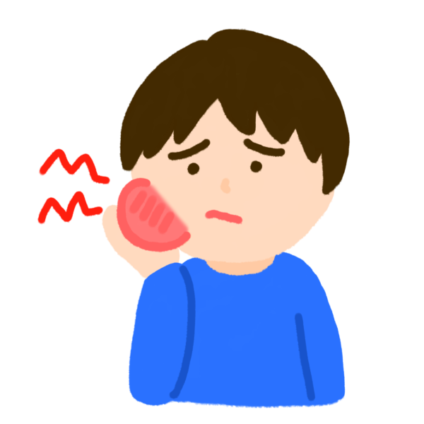 歯が痛くて手で頬をおさえている男の子のイラストです。