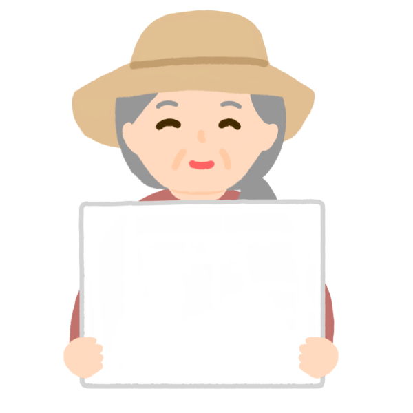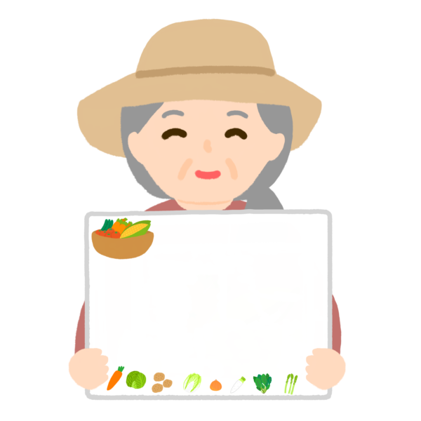 野菜農家のおばあさんがポップを持ったイラスト
