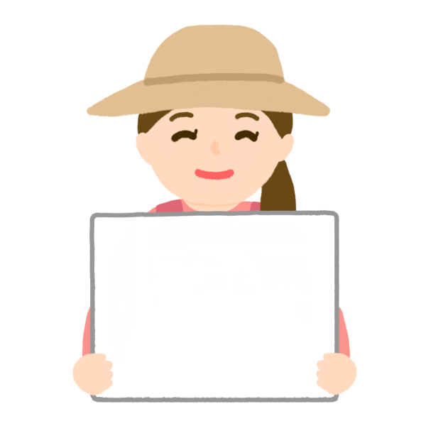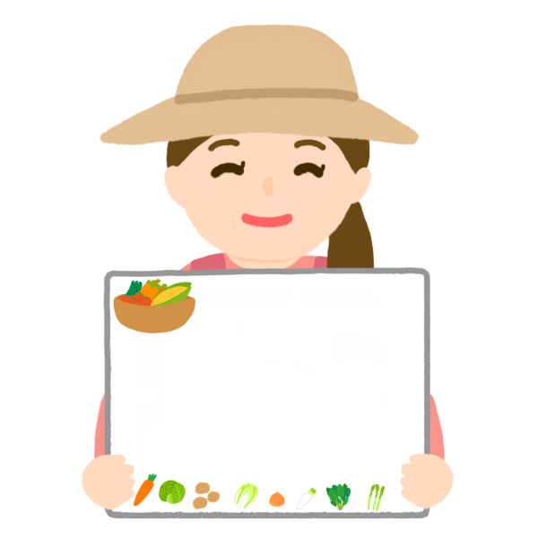 野菜農家女性がポップを持っているイラストです。