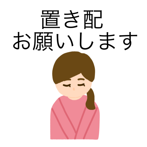 置き配をお願いしてお辞儀している女性のイラストです。