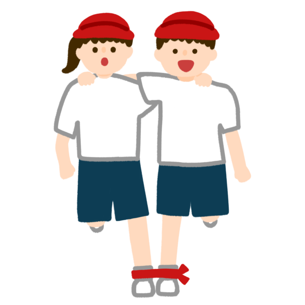 子供達が二人三脚をしているイラストです。
