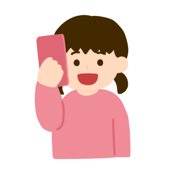 電話で話をしている女の子のイラストです。