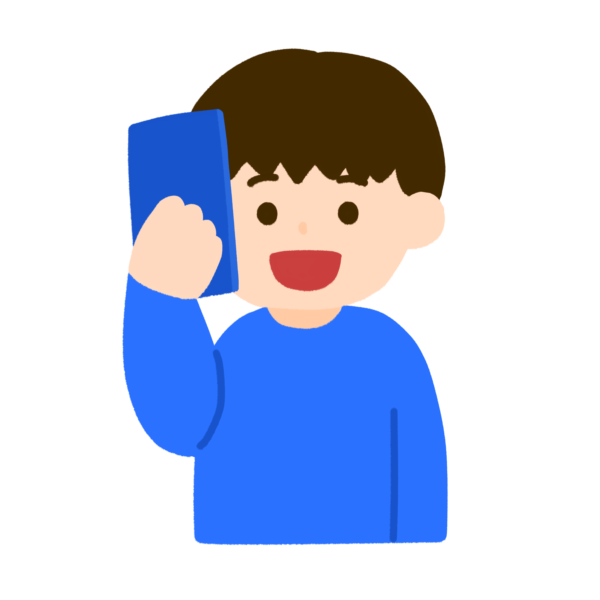 電話で話をしている男の子のイラストです。