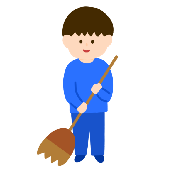 ほうきで掃除をしている男の子のイラストです。