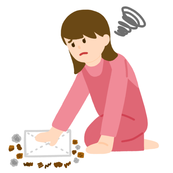 床が汚れて困っている女性のイラストです。