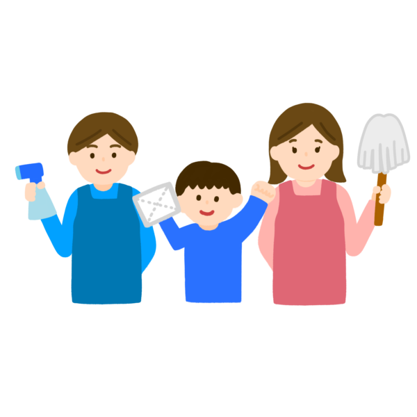 家族で掃除をするイラスト