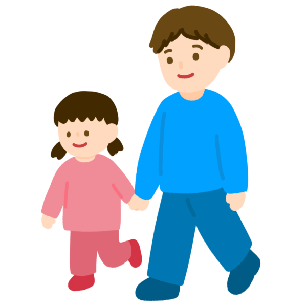 仲良く歩くお父さんと女の子の親子のイラストです。
