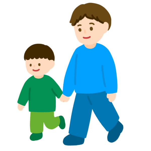 仲良く歩く親子、お父さんと男の子のイラストです。